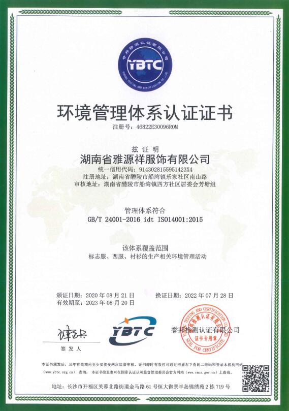 1、企業(yè)概況 湖南省雅源祥服飾有限公司地處湘贛邊境素有瓷城之稱的醴陵郊區(qū),企業(yè)創(chuàng)建于1995年,是行政執(zhí)法制服、被裝的生產(chǎn)企業(yè)。2、組織機(jī)構(gòu) 跟隨改革開放的步伐,我公司不斷發(fā)展壯大,公司董事會下設(shè)總經(jīng)理辦公室、生產(chǎn)部、技術(shù)部、質(zhì)檢部、財務(wù)部、采購部、業(yè)務(wù)部等部門,下設(shè)有流水線西服生產(chǎn)車間、標(biāo)志服生產(chǎn)車間、襯衣生產(chǎn)車間、... [更多]